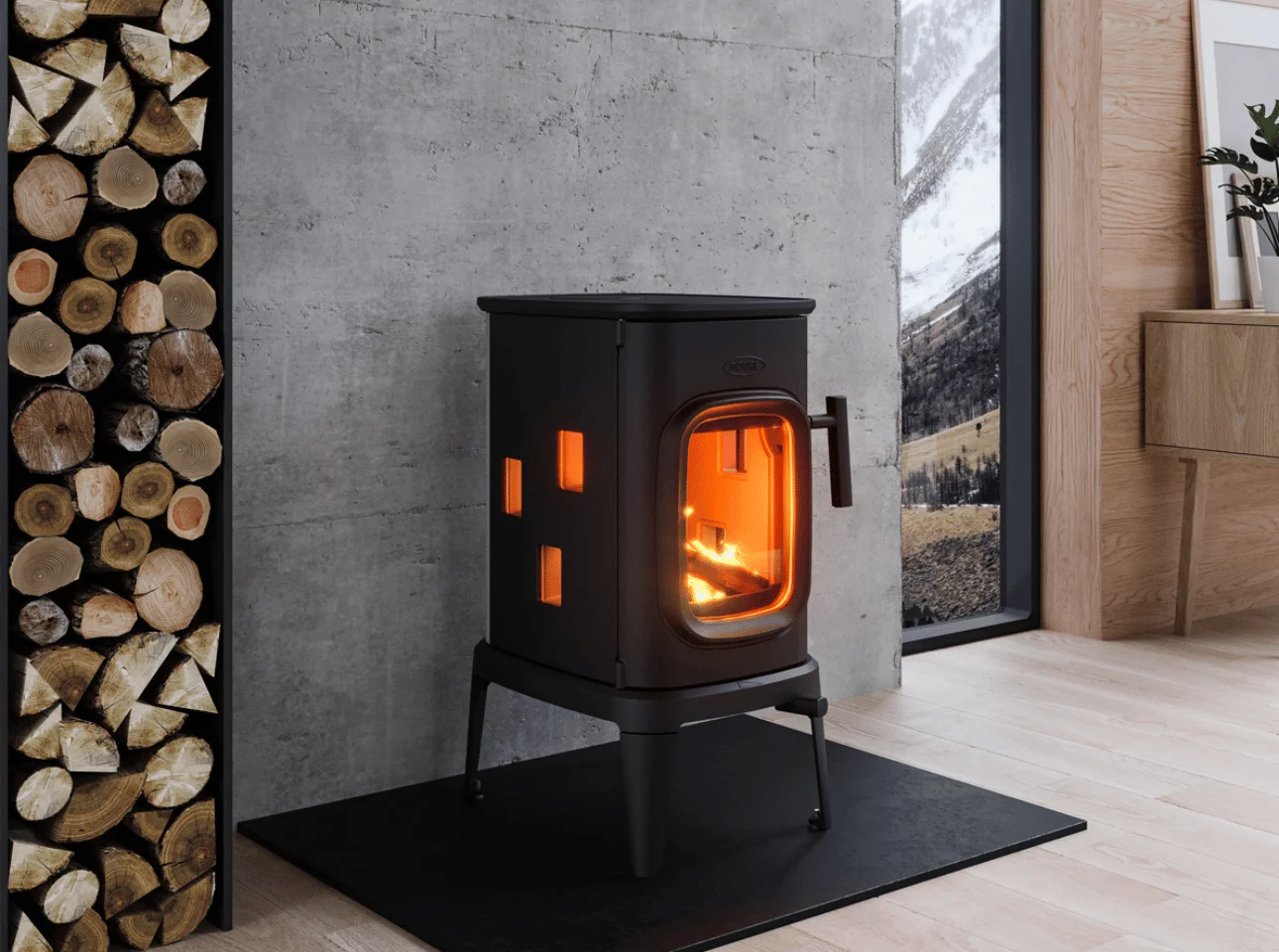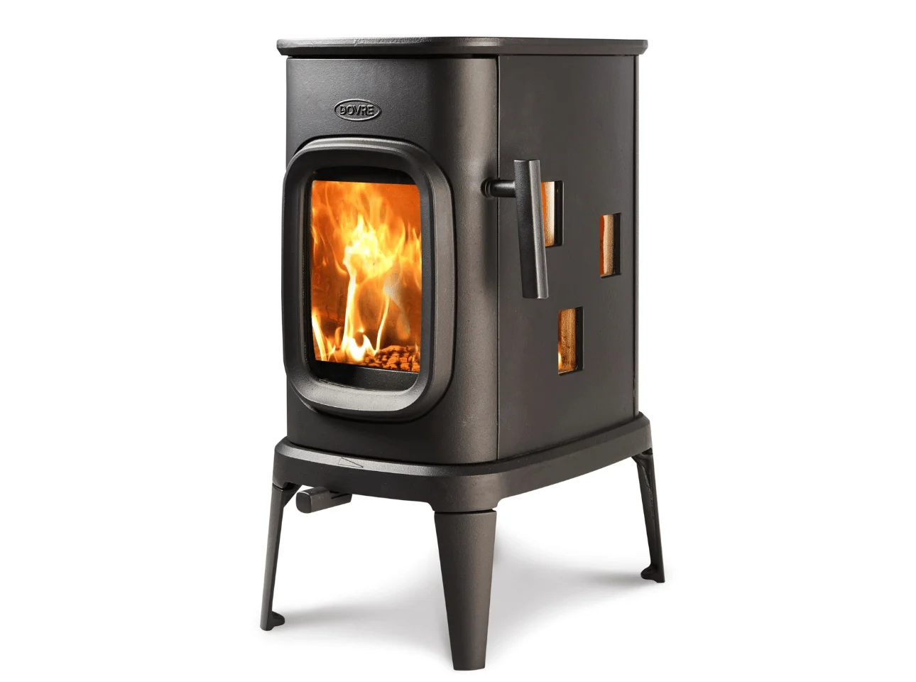 Ne vous fiez pas aux apparences avec le poêle à bois Saga 107 de la marque Dovre. Ce poêle de 7 kW avec ses diverses surfaces vitrées vous permettra un chauffage puissant associé à une très belle vision de la flamme par la face avant et les côtés du poêle.